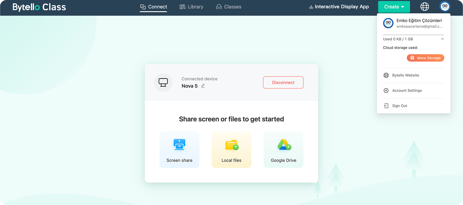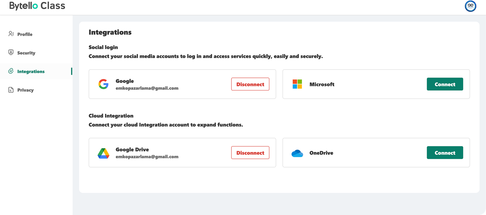 Rahatça dosya paylaşabilmek için Cloud hesaplarınızı Bytello Class’a entengre edebilirsiniz.