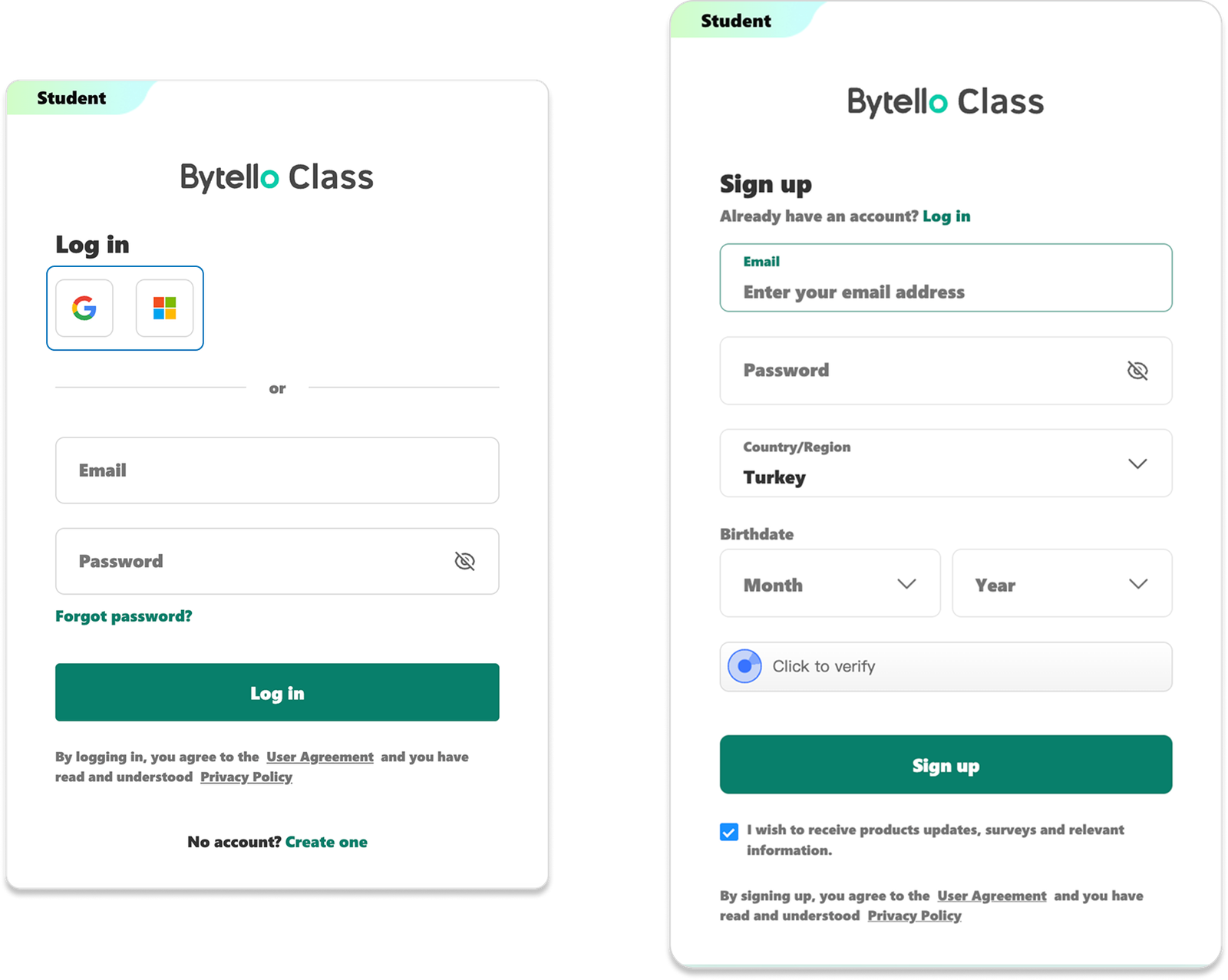 Öğrenciler, https://student.bytello.com adresinden giriş yapabilir.