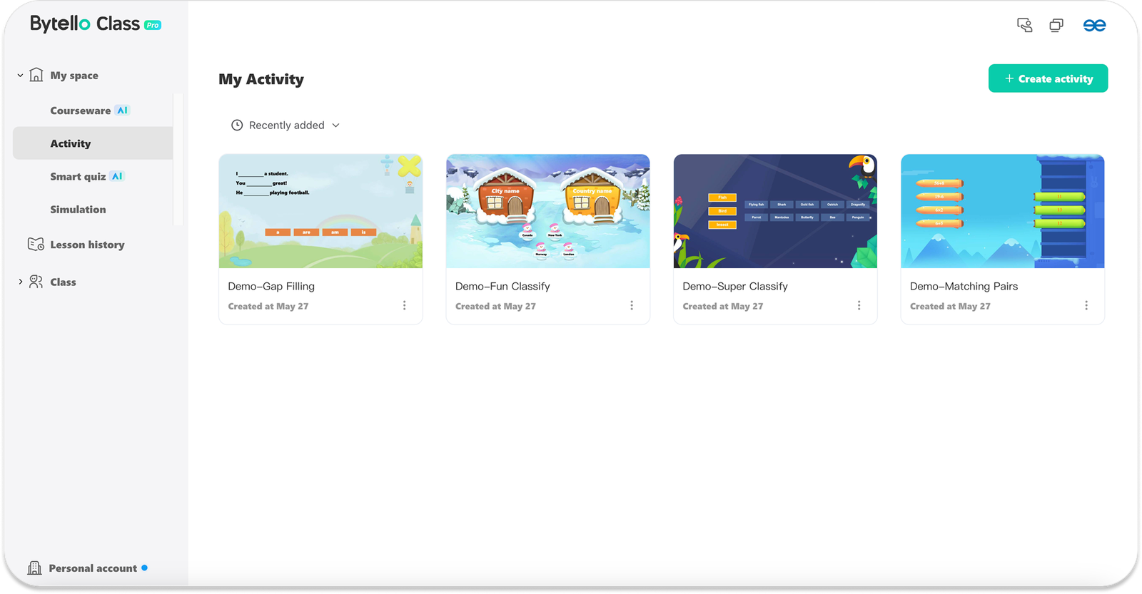 - Activity: İçeriğin öğrenci cihazlarına gönderildiği modül; öğretmen ilerlemeyi anlık takip edebilir.