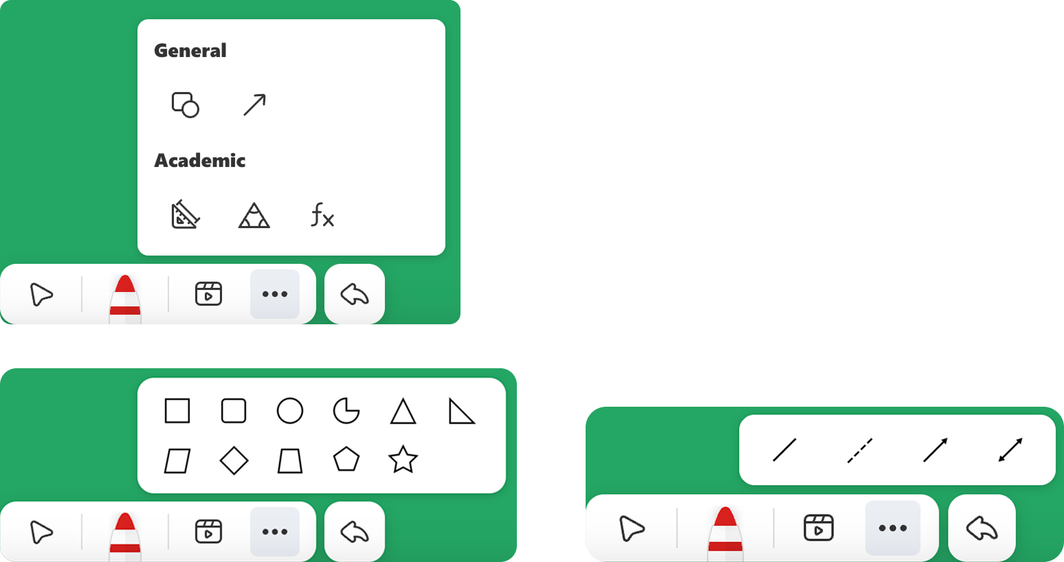 - Düz çizgi, ok, dikdörtgen gibi temel şekiller