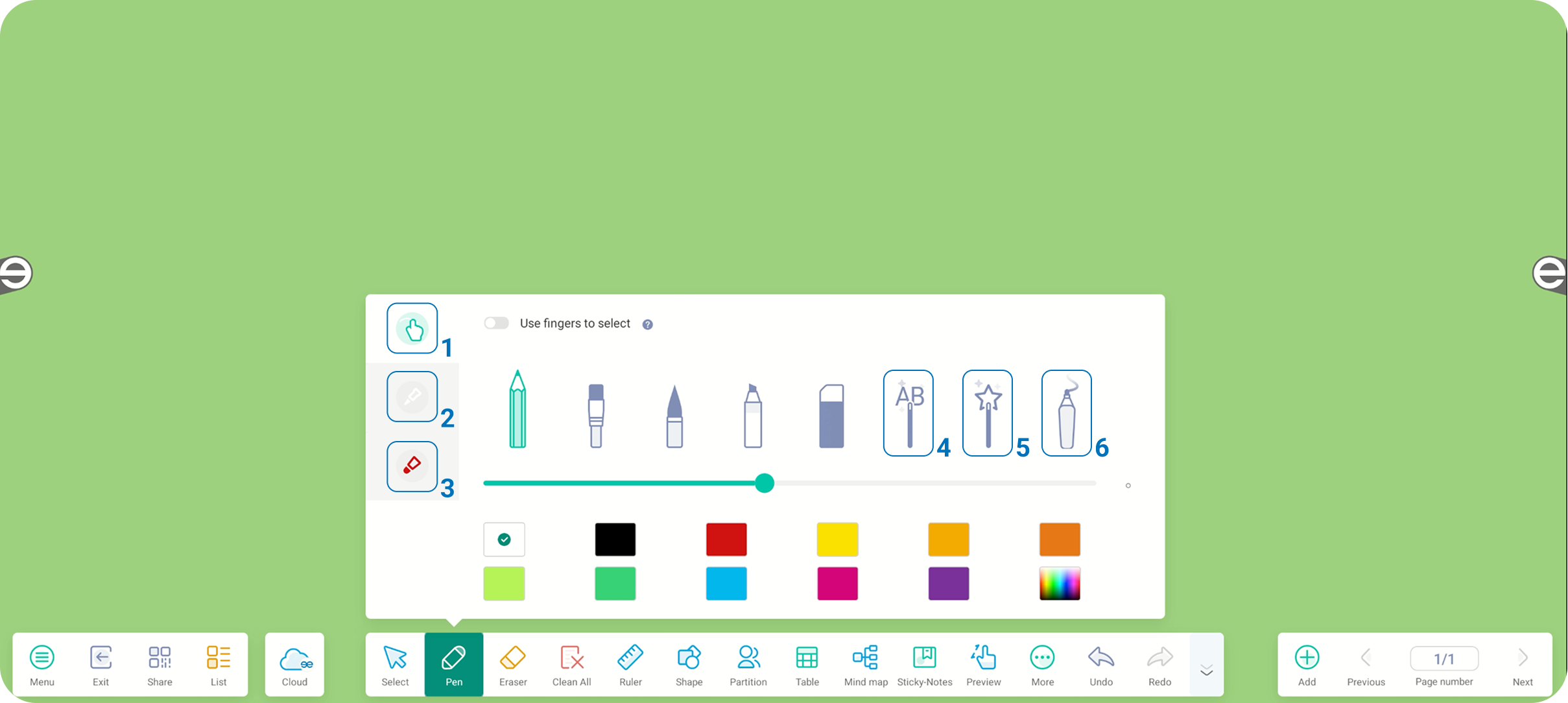 *Eğer yazmayı bırakıp ekrandaki nesneleri seçmek isterseniz, Finger modunu aktif ederek kalemi geçici olarak devre dışı bırakabilir ve seçili nesnelerin biçim ayarlarını düzenleyebilirsiniz.