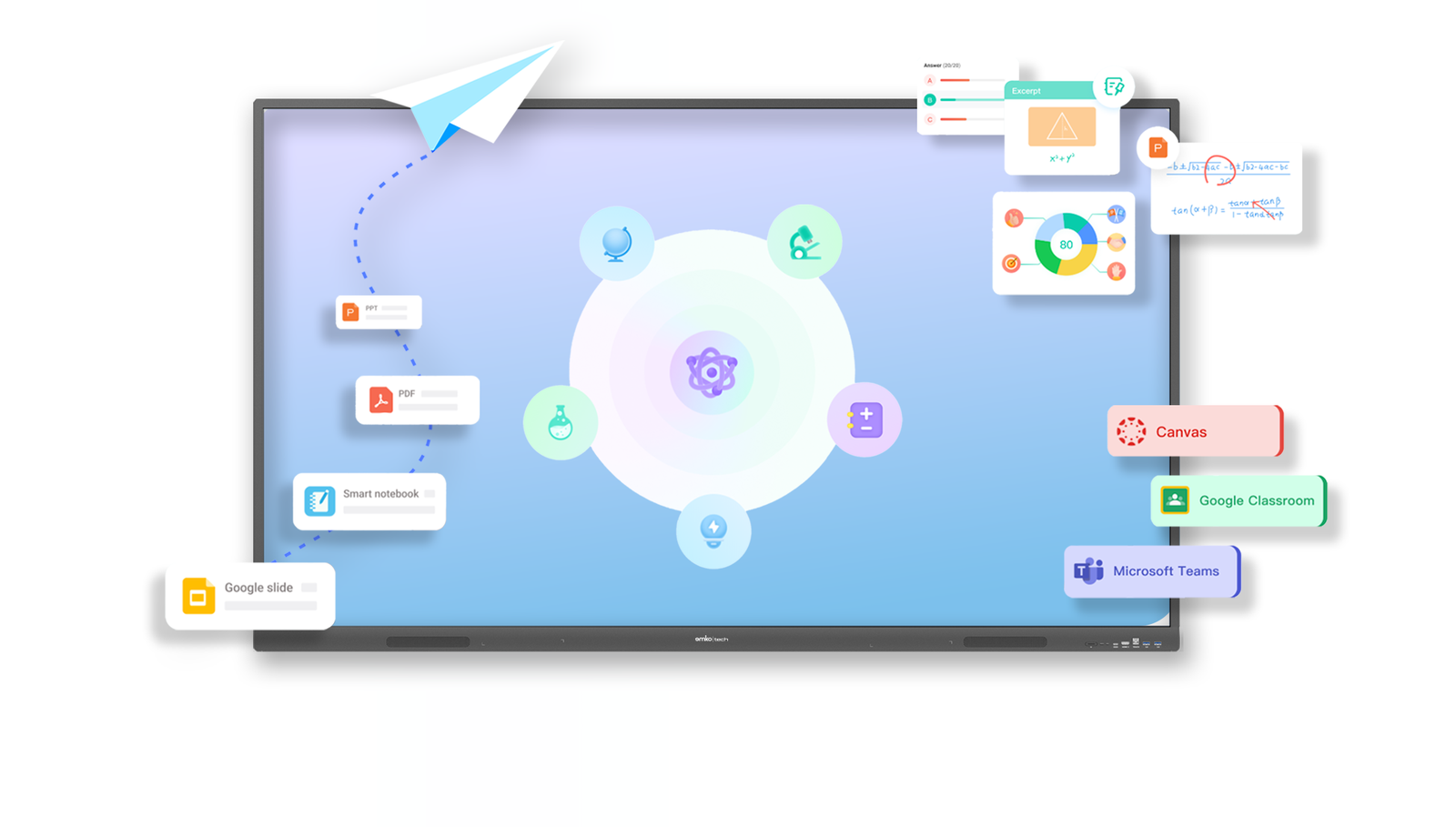 - Class Pro sayesinde öğretmenler, öğrenci cihazlarıyla senkronize çalışan etkileşimli dersler oluşturabilir; gerçek zamanlı içerik paylaşımı, ortak beyaz tahta kullanımı ve bireysel not alma gibi işlevlerle ders boyunca aktif katılım sağlar.
