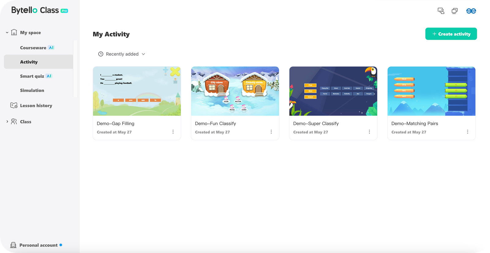 - Activity: İçeriğin öğrenci cihazlarına gönderildiği modül; öğretmen ilerlemeyi anlık takip edebilir.